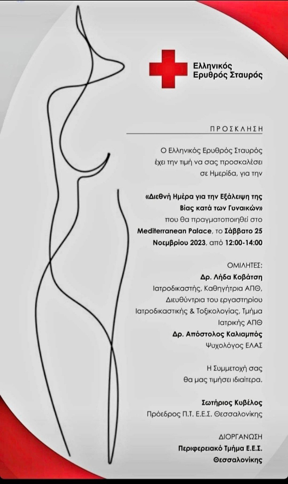 Το Νοεμβριο του 2023 ο Ελληνικος Ερυθρος Σταυρος , Περιφερειακο Τμημα Θεσσαλονικης, διοργανωσε ημεριδα στο Mediterranean Palace με αφορμη την Παγκοσμια Ημερα για την Εξαλειψη της Βιας κατα των γυναικων με εκλεκτους εισηγητες- ομιλητες.